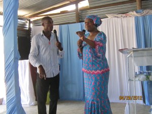 Pst. Ollie and Elder Helena in bush area of Mosiro Villagedistributing Beans