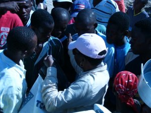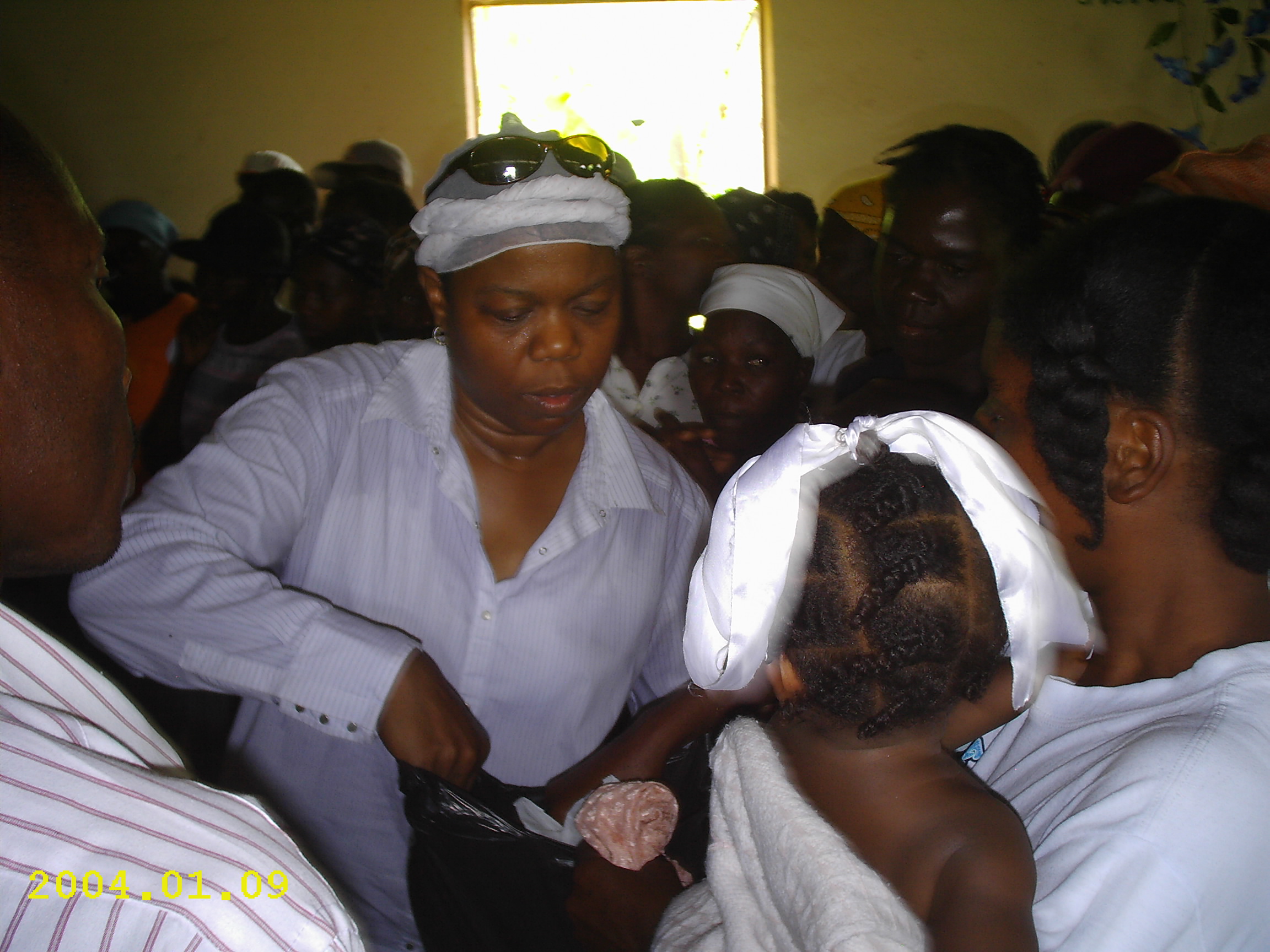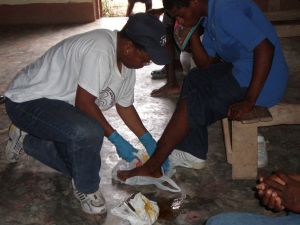 Distributing items in rural village of Descharos. Treating Haitian youth during a previous mission to Haiti following the devastating flood of 2008.
